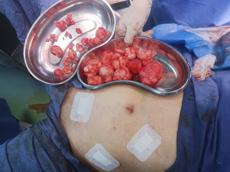 Multiple fibroids (45 fibroids) removed laparoscopically , deep seated in the substance uterus. Varying in size from 1 cm to 6 cm with minimal invasive , minimal scars on uterus, with successful anatomical reconstruction of uterus ovaries and tubes
